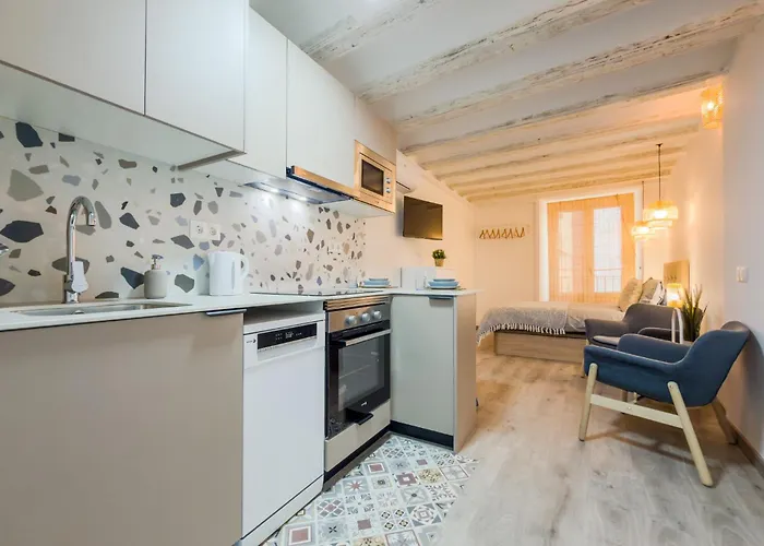 O apartamento Acogedor Y Centrico Estudio 2 tem cozinha equipada e forno e máquina de lavar loiça. Os hóspedes também podem pegar um autocarro na estação de autocarros Pl Joan Amades, situada a 200 metros de distância para explorar o resto de Barcelona.